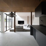 2階建てではありますが、主寝室やファミリークローゼットを1階に配置し、ワンフロアで生活が完結できる間取りに。吹き抜けを介して、2階の子供部屋とのつながりを感じられるのも特徴の一つになっています。リラグゼーションの中心となるのは開放的なLDK。こんな大空間にもかかわらず、家にはエアコンが1台のみ。その1台のみで快適な夏を過ごせます。また、小屋裏まで書棚を造作したワークスペースやトレーニングルームも用意。ライフスタイルをうまく組み込みながら、家族が心からくつろげる健康に暮らせる住まいが完成しました。