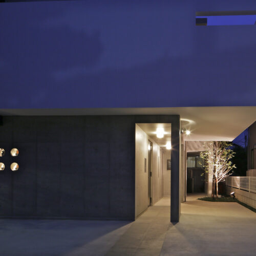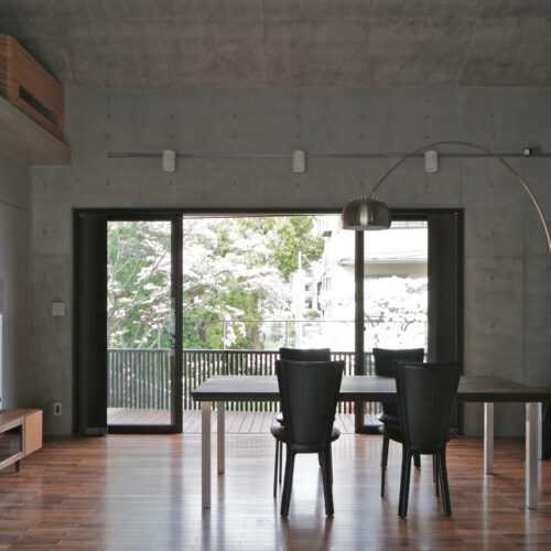建物は中庭を取り囲む回廊状にすることで、家全体に光と風を効率よく取り込むともに、周辺からのプライバシーを確保。さらに、交通量の多い幹線道路の騒音抑制にも成功している。