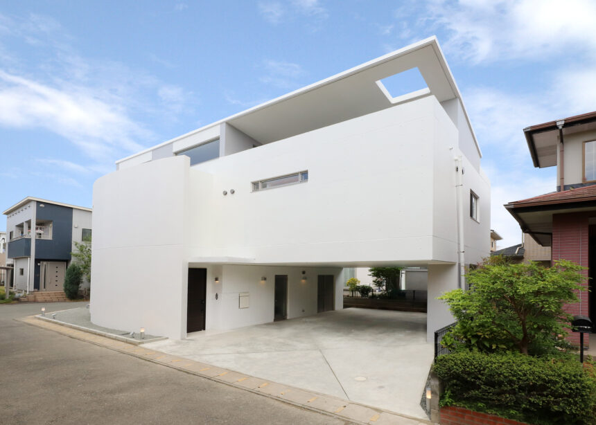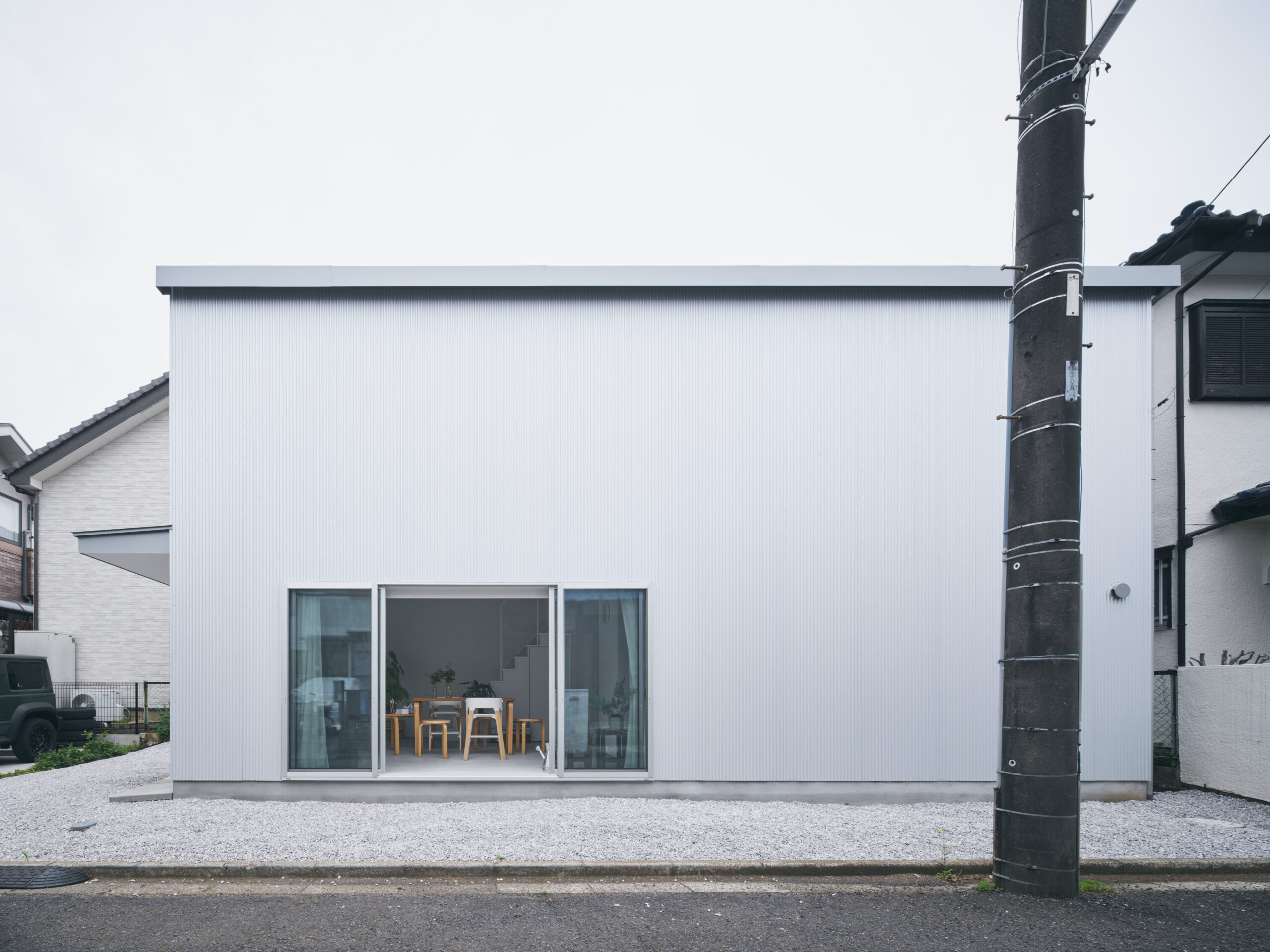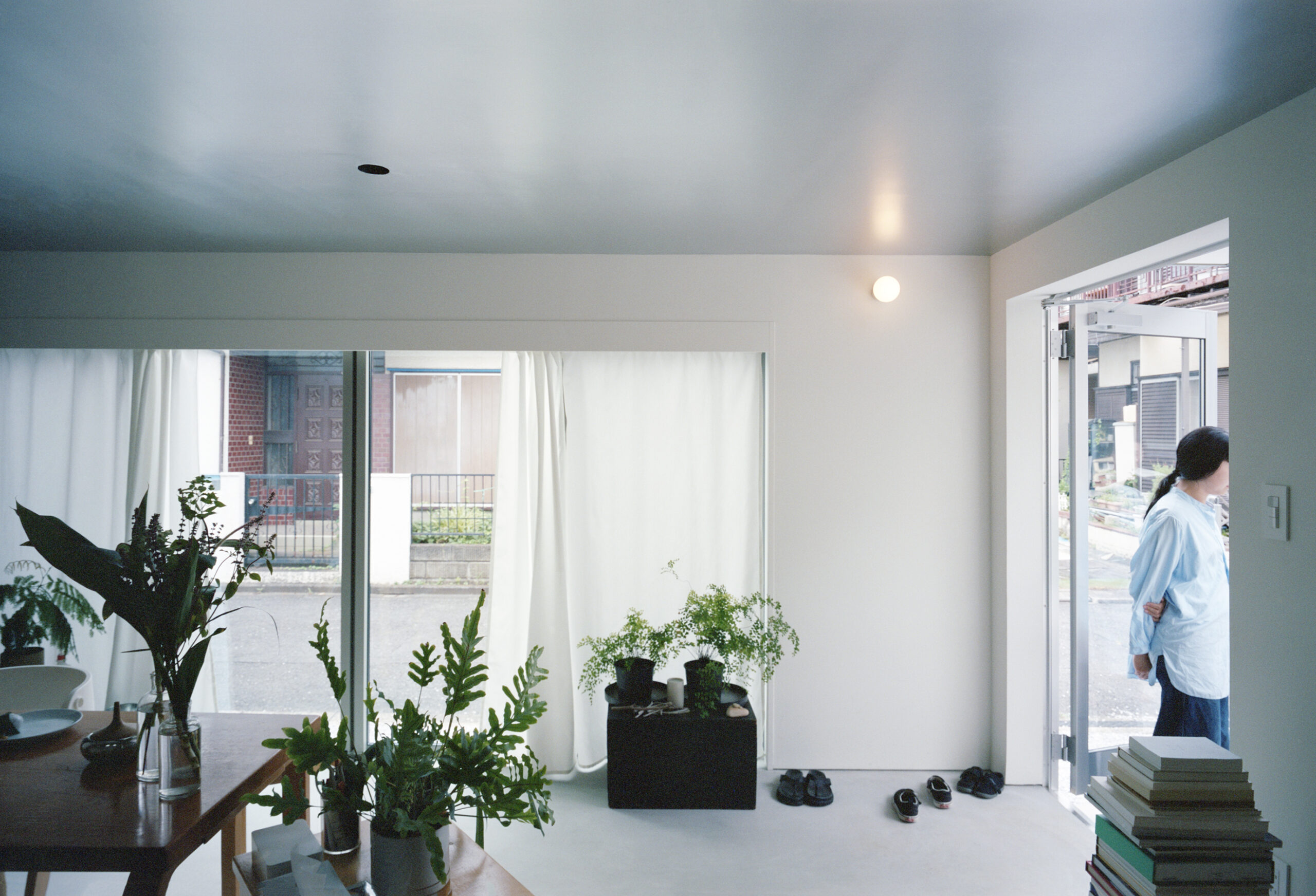 この家では、用途ごとに壁で空間を分割するのではなく、境界を重ね合わせる構成によって、現実を超える広がりを立ち上げようとした。