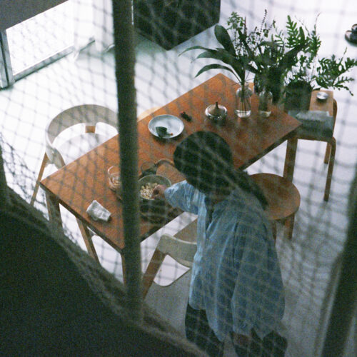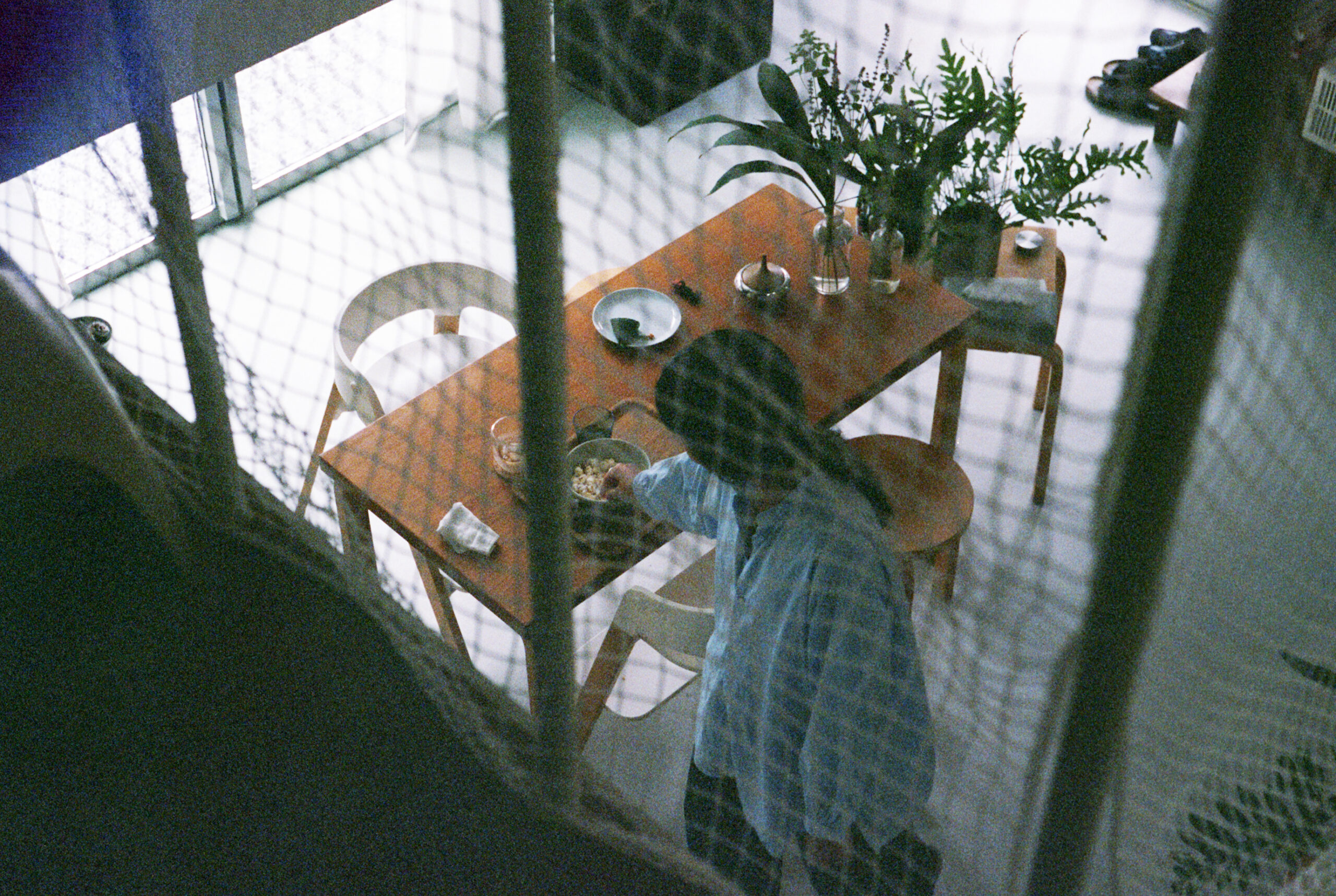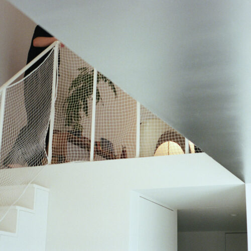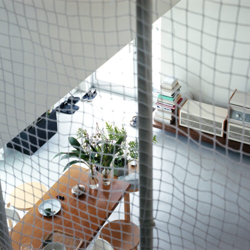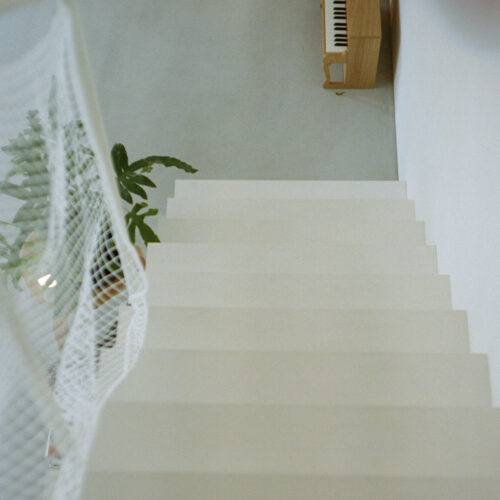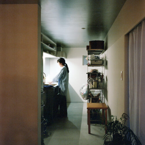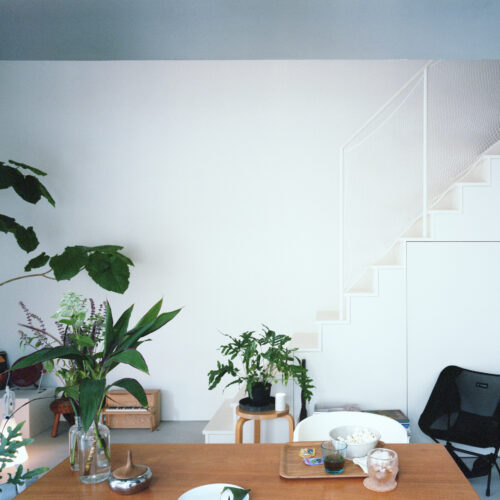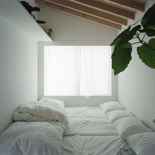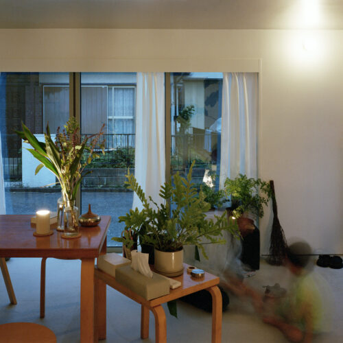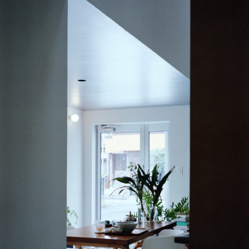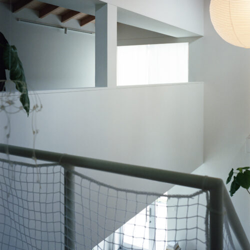 さらに、反復する平面と視線が届かない構成は、声や音は届くのに姿は見えず、遠いのに近く感じられる感覚を生む。見えなくとも気配を確かに感じることで、空間そのものの存在が想像のなかに立ち上がる。この家では、そうした想像上の奥行きや、見えないが確かに存在する空間が、日常の中に静かに立ち上がることを目指した。気配や光、音が重なり合い、現実を越えた広がりを生み出す。家という最も親密な場所が、重層的な時間や距離を内包する場であればと思う。