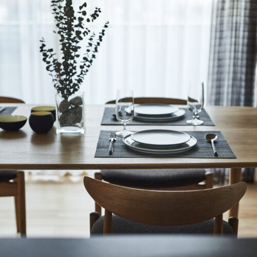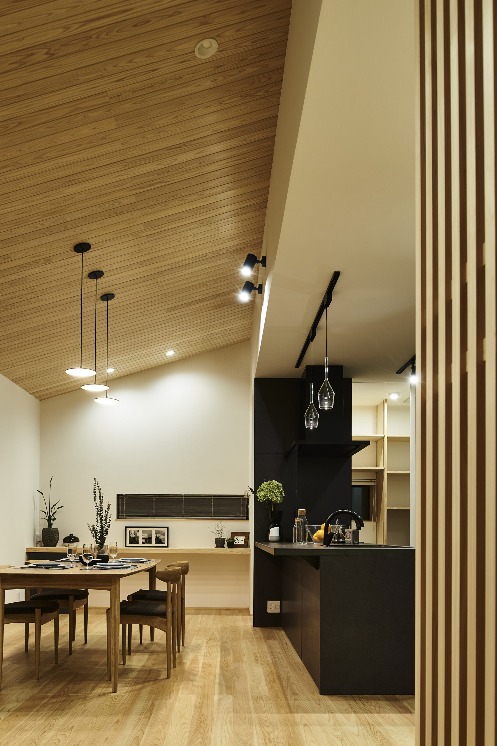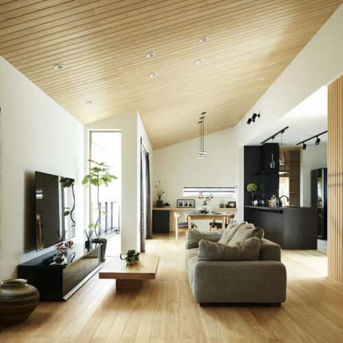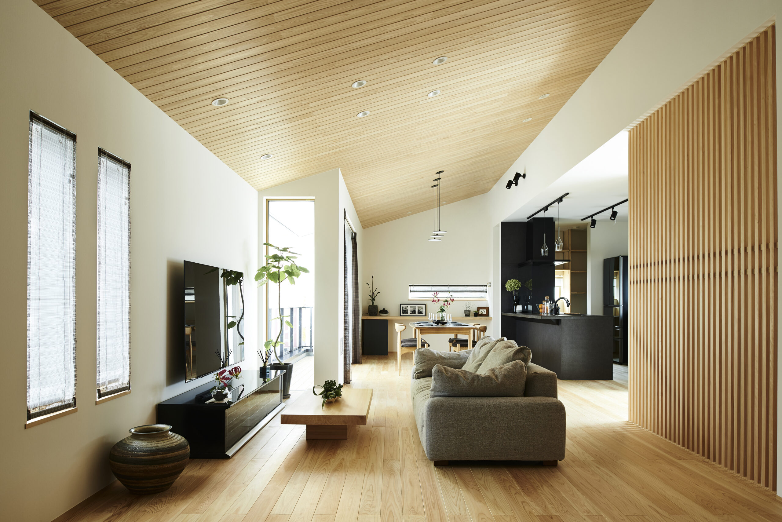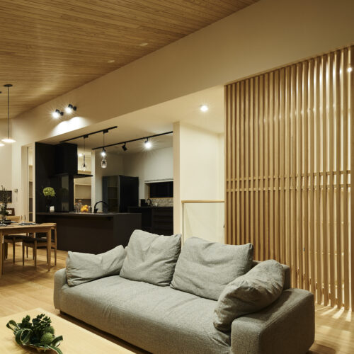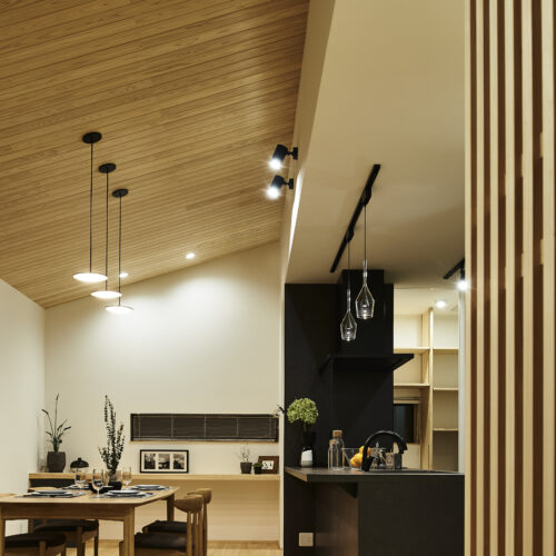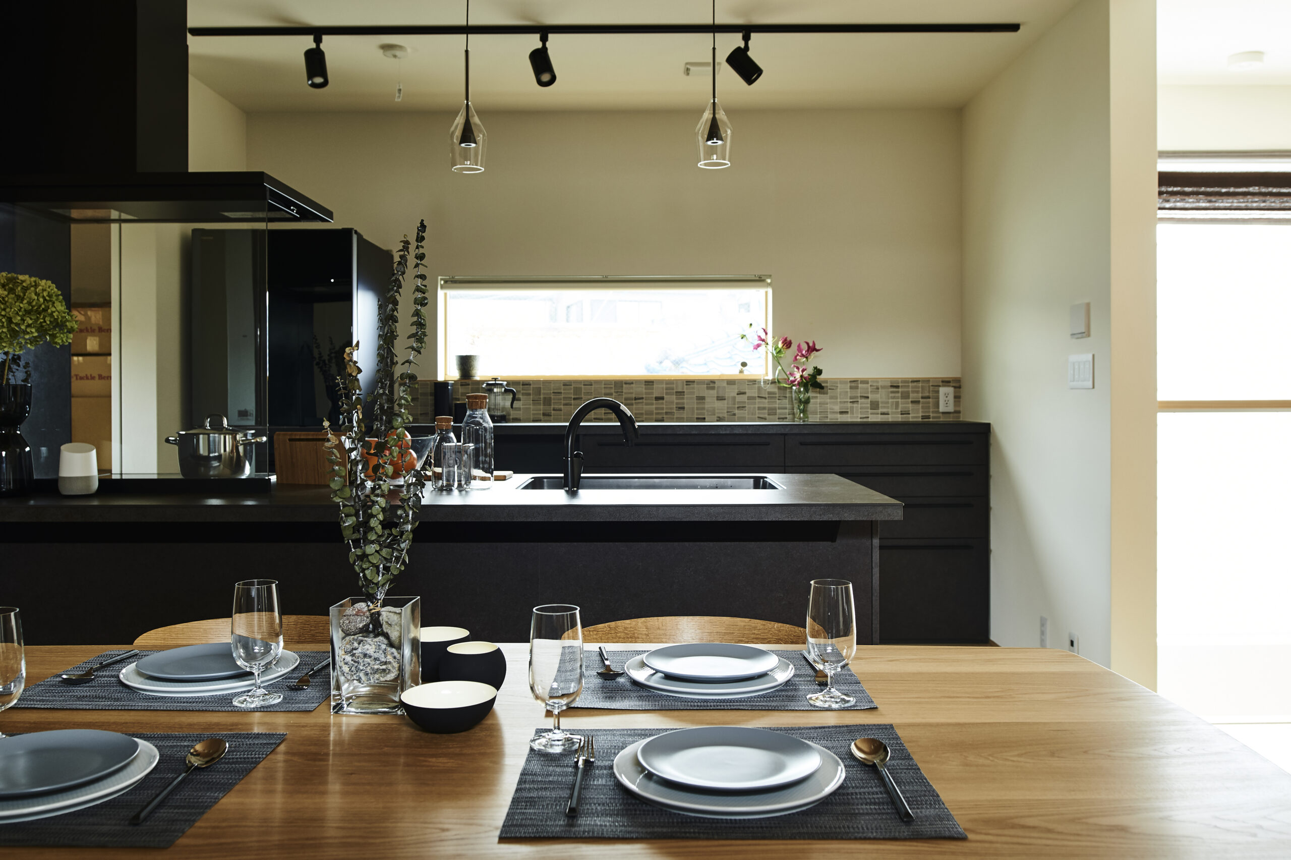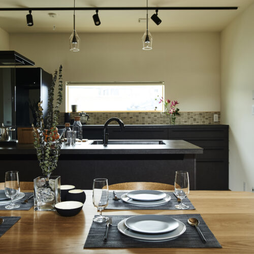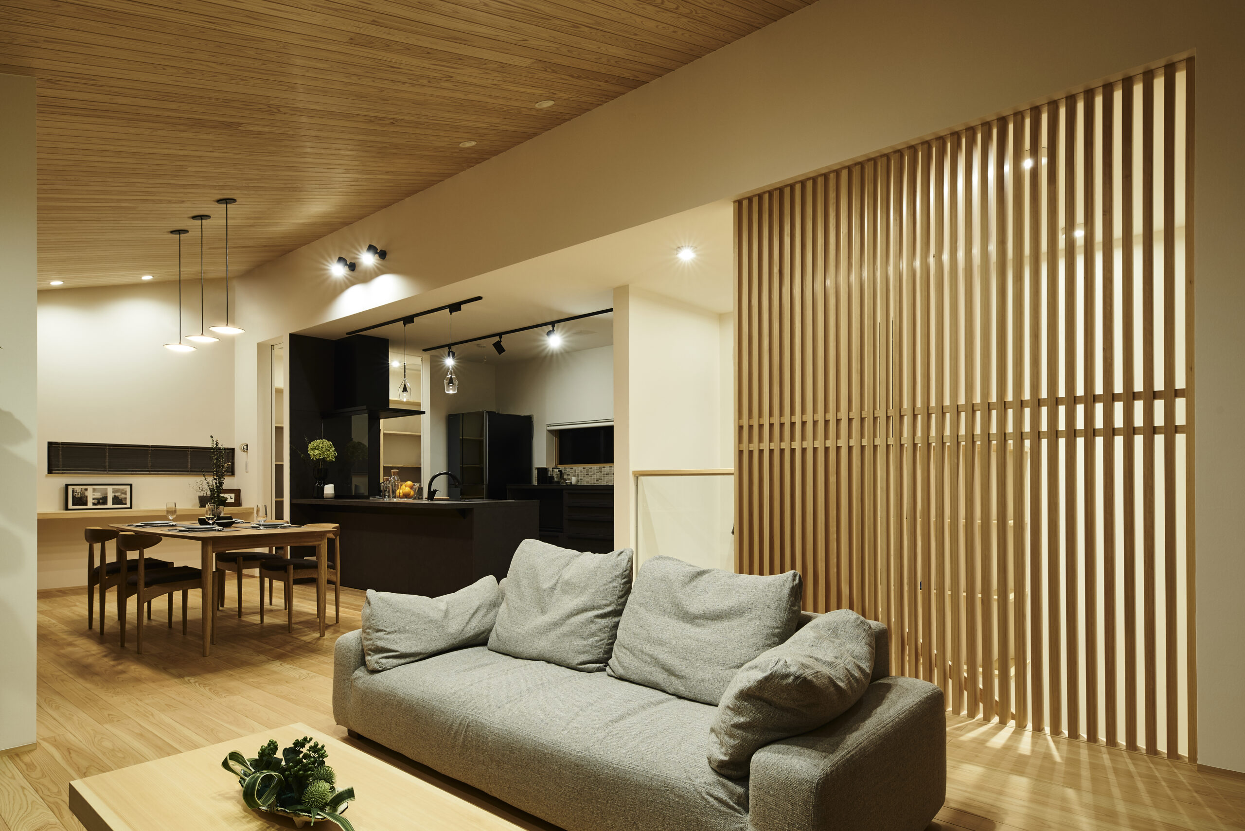 「檜=和風」をイメージされますが、黒をインテリアの基調にモダンな印象に。