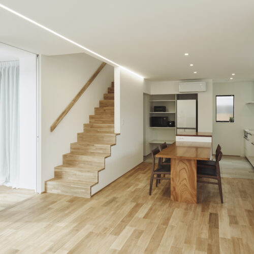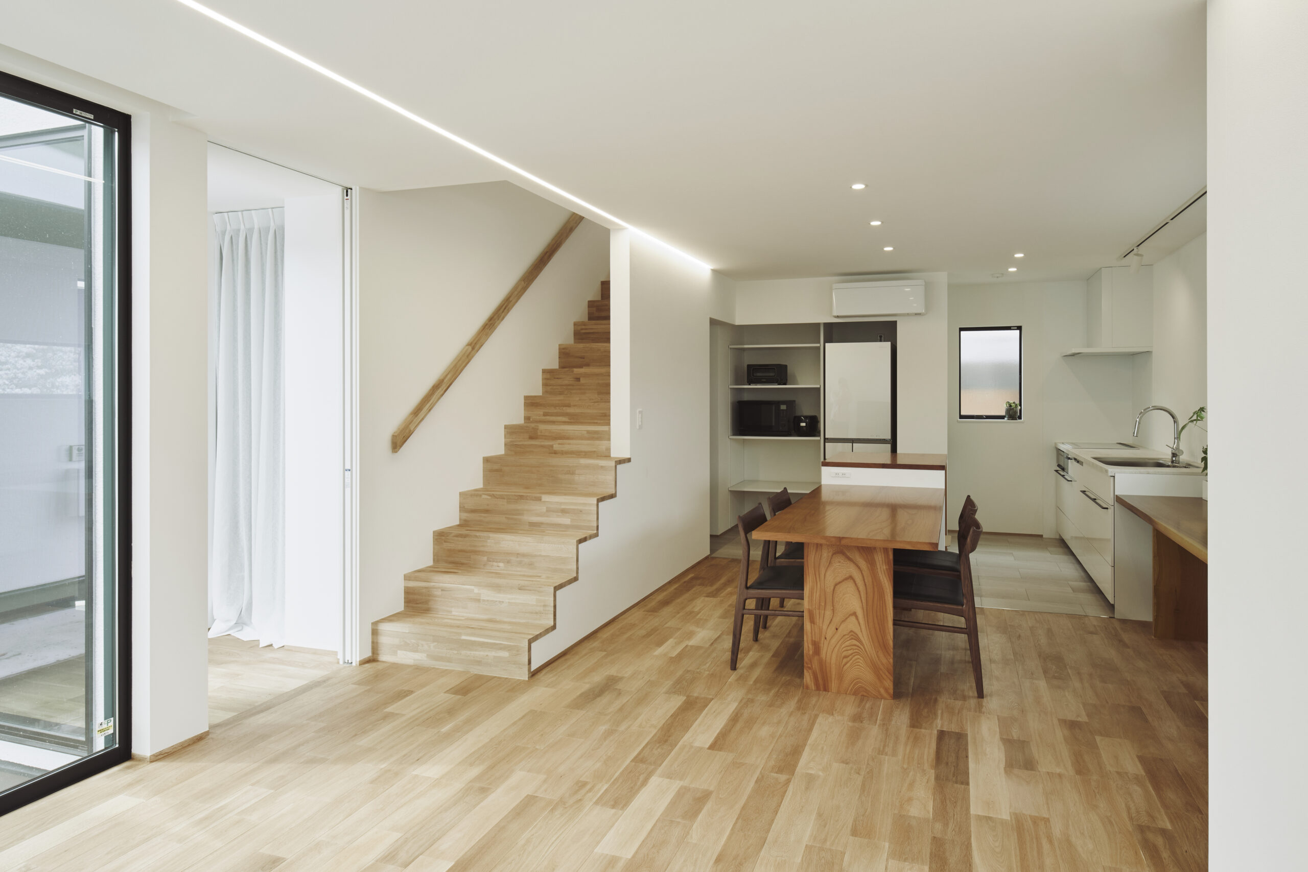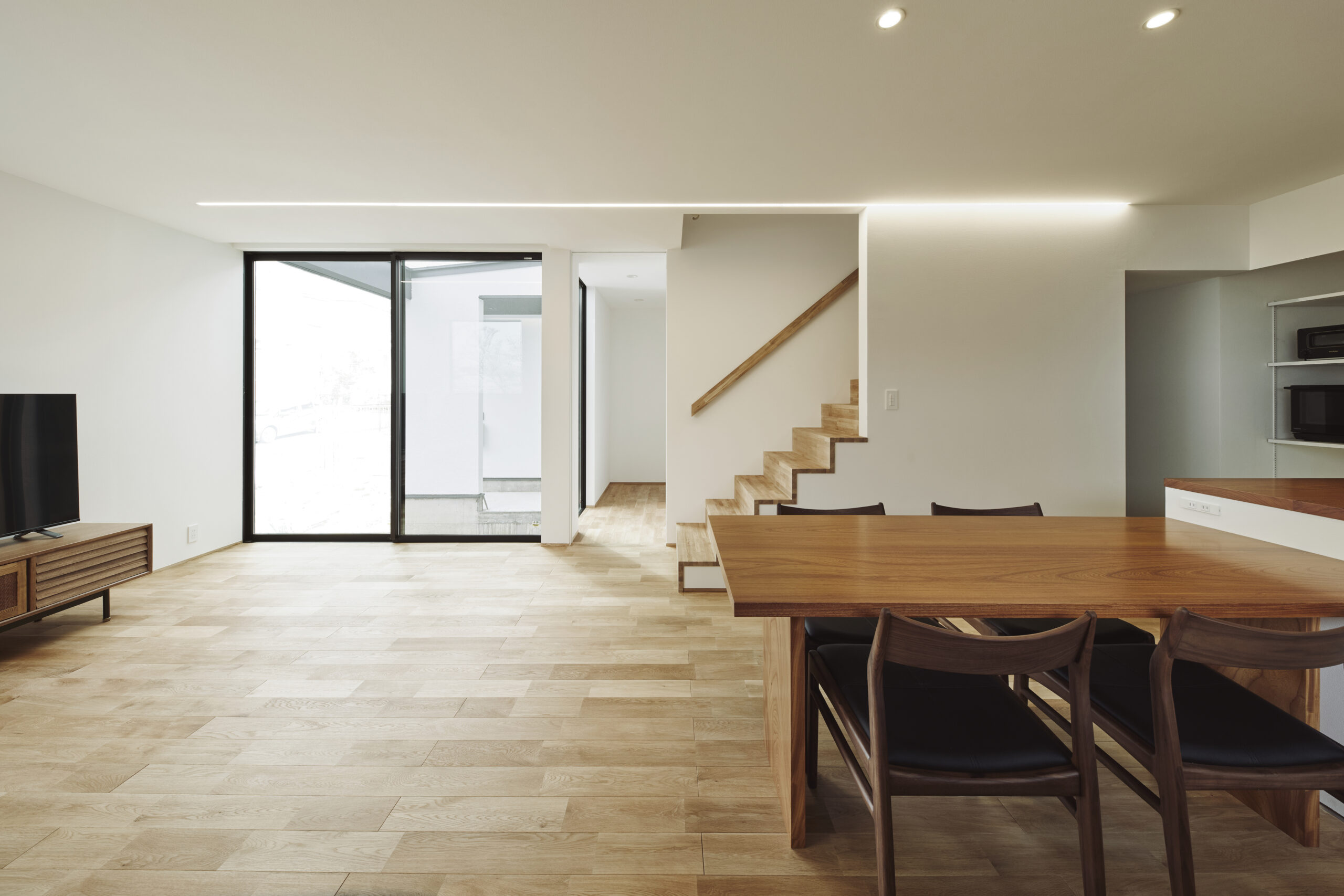 家族が集まる場として「大きなダイニングテーブル」を家の中心に計画しました。