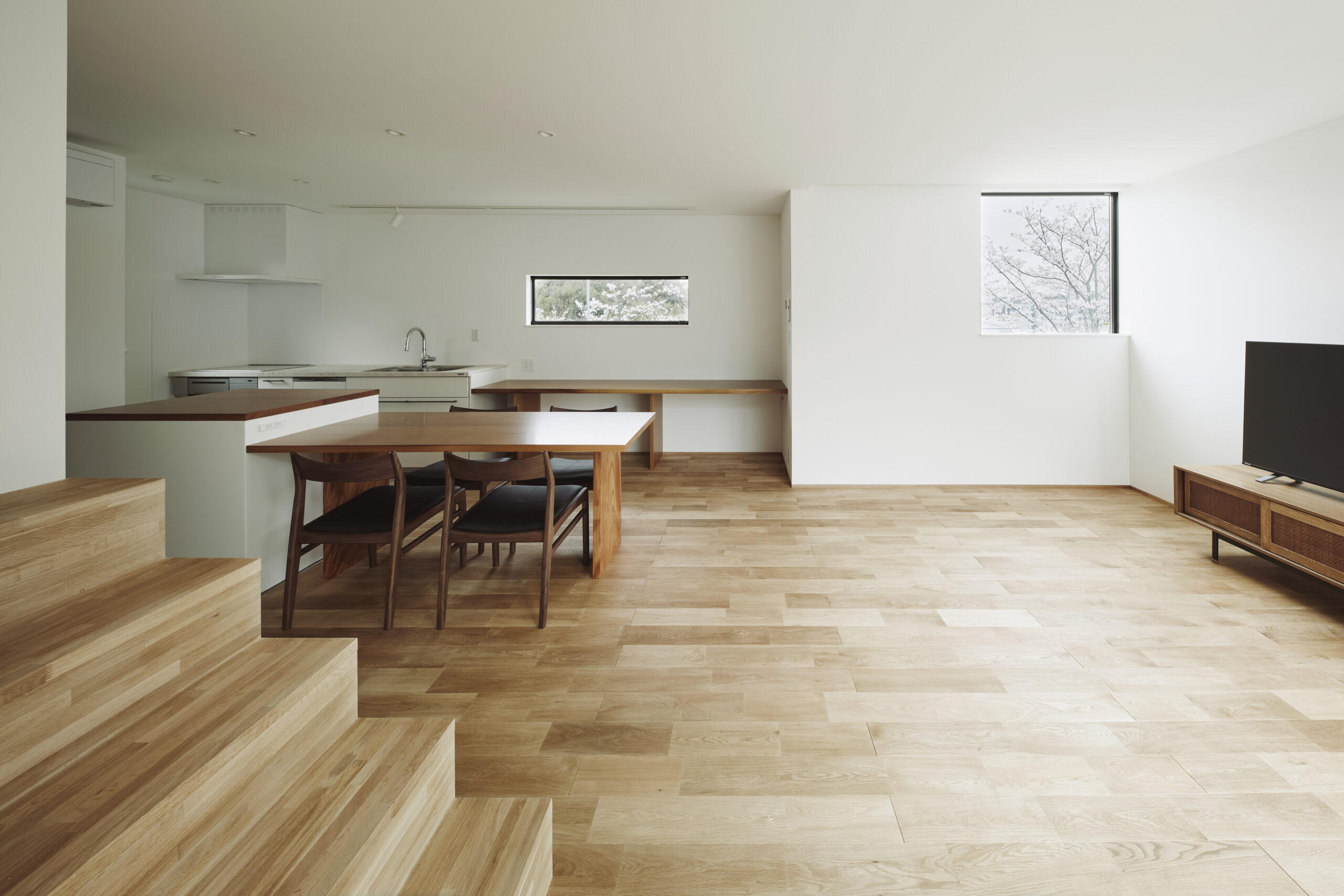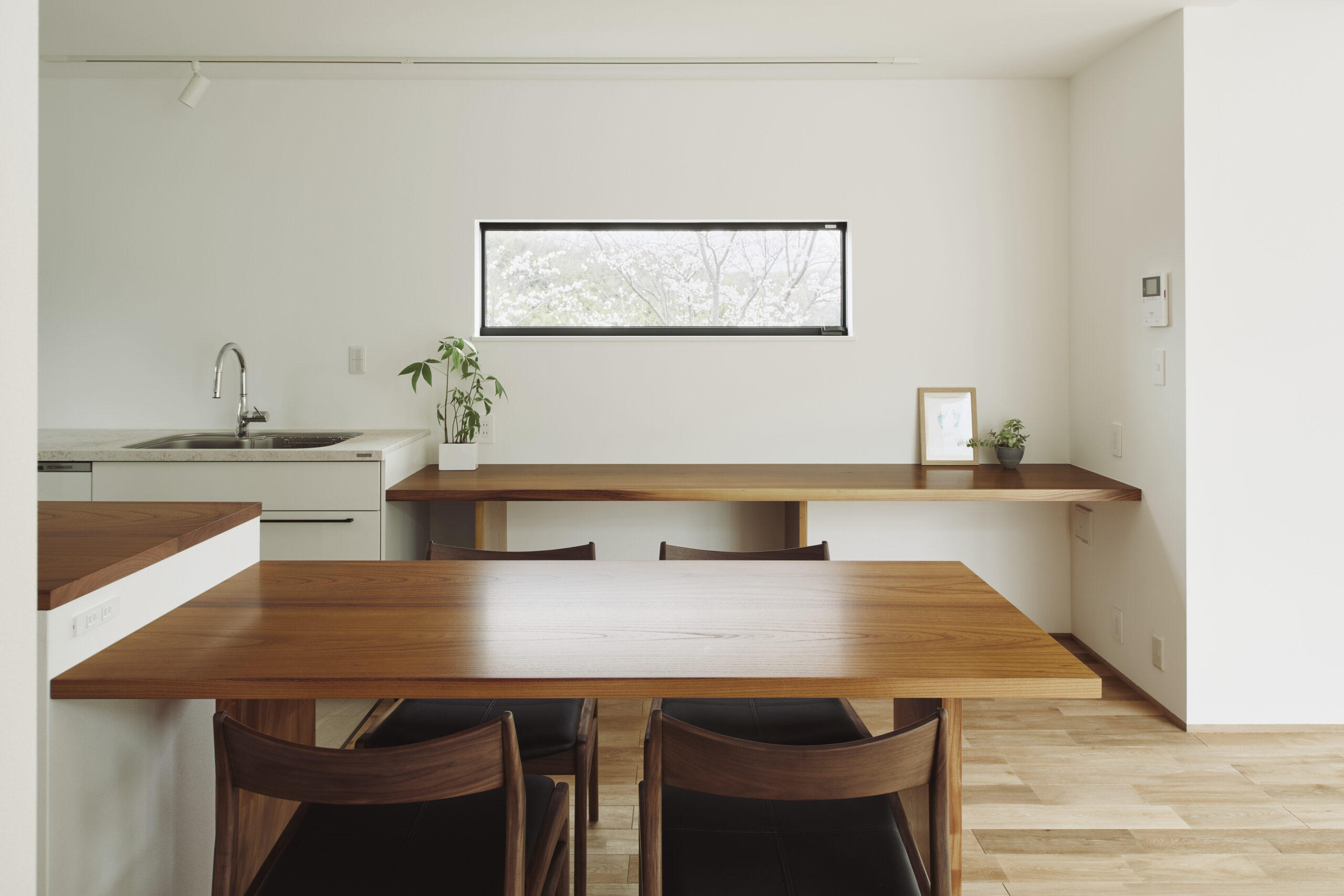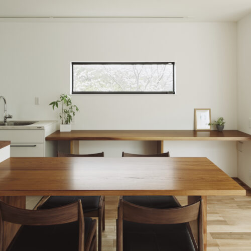 季節ごとに異なる表情を見せる窓を眺めながらダイニングテーブルを囲む時間がクライアントの一番の楽しみだそう。気持ちの良い空間で素敵な時間を過ごしていただけたらと願っています。