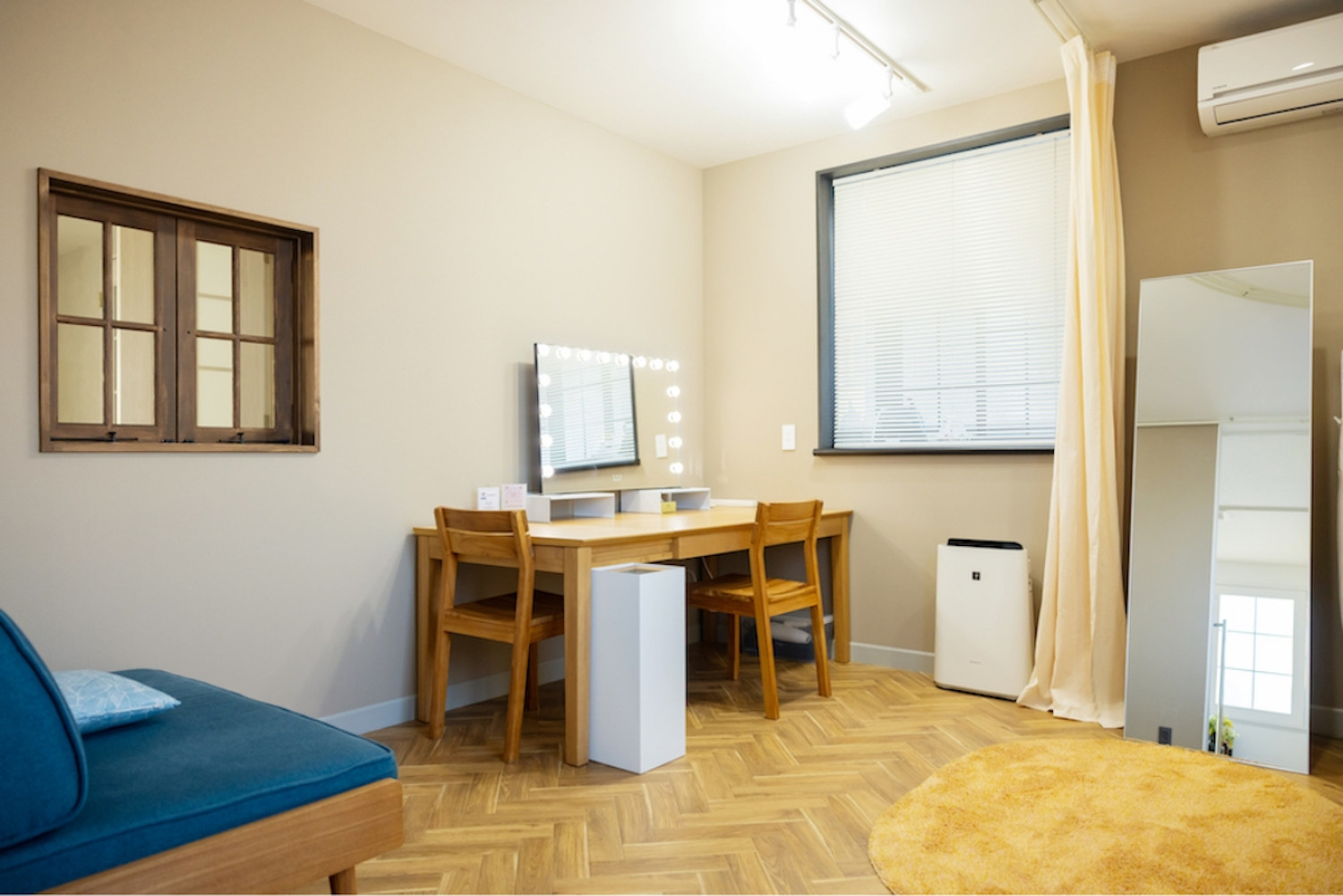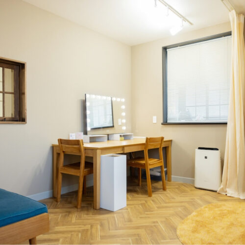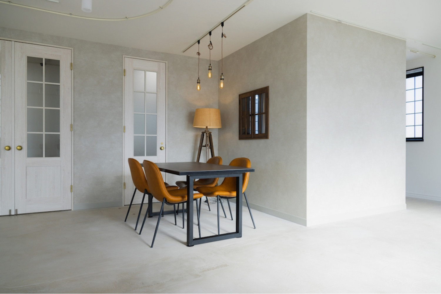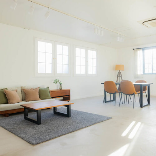 ワンフロアーの中でリビング、ダイニング、寝室の位置を変えることを想定した自由度の高い間取りとしました。既存サッシが断熱性能の低いものだったので、既存窓の内側に特注の木製窓を設置しました。2重窓で断熱性能を高めています。不透明なガラスを入れることで視線を遮り、やわらかく陽射しを取り込んでいます。
