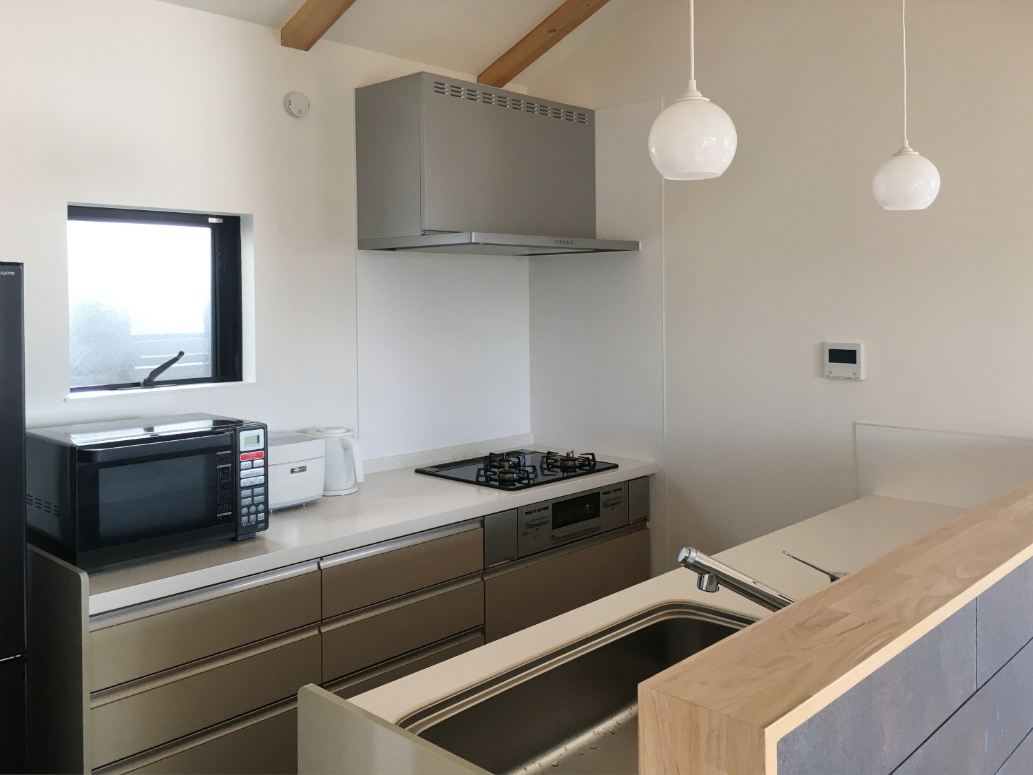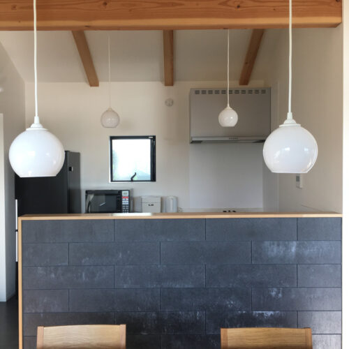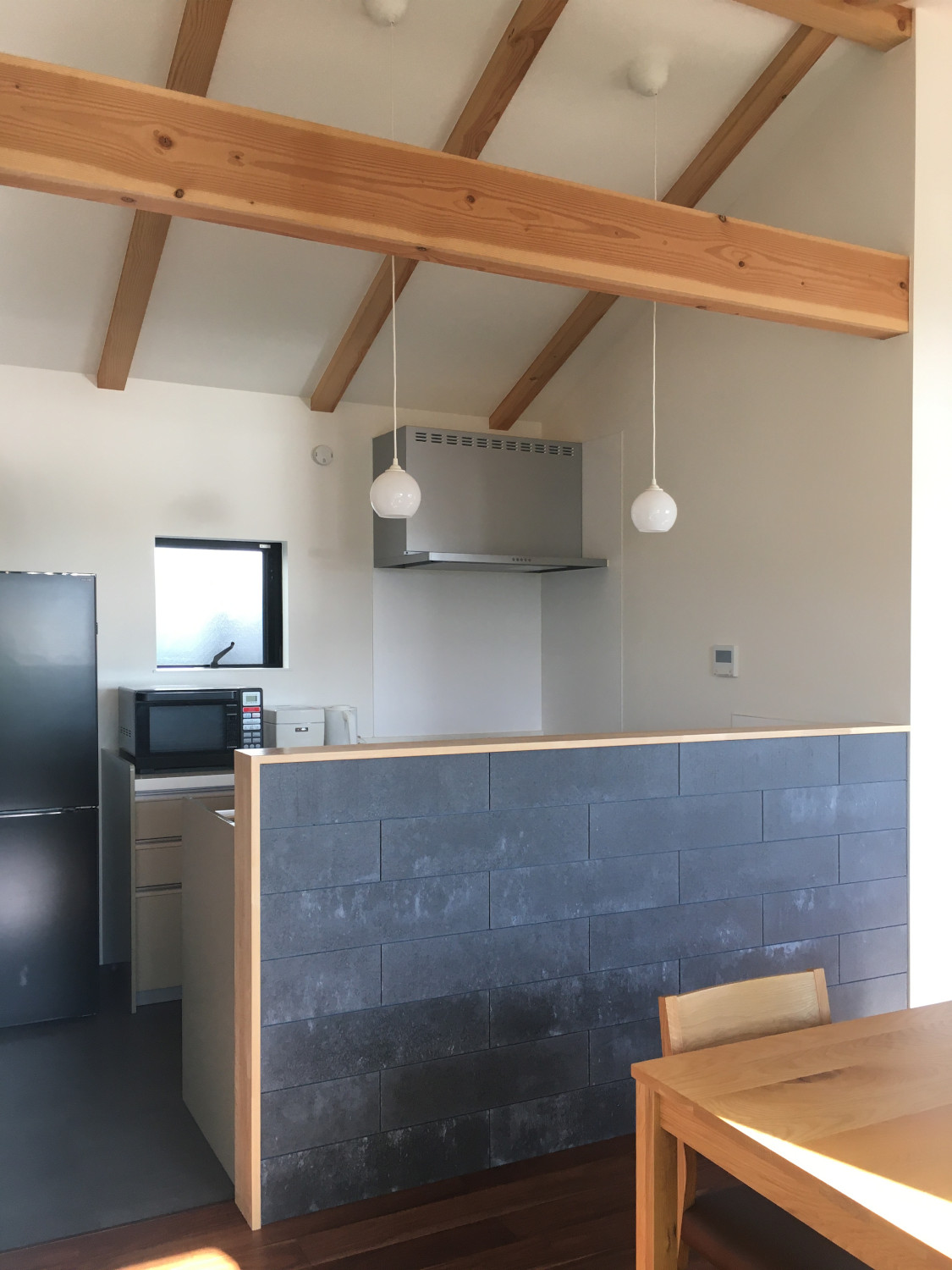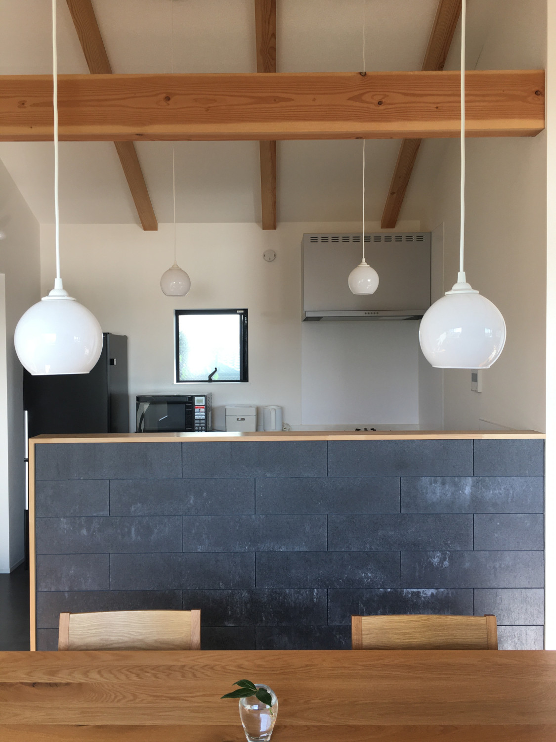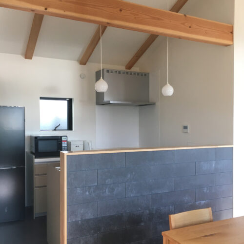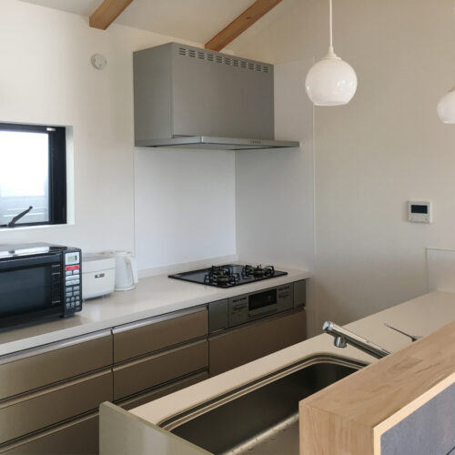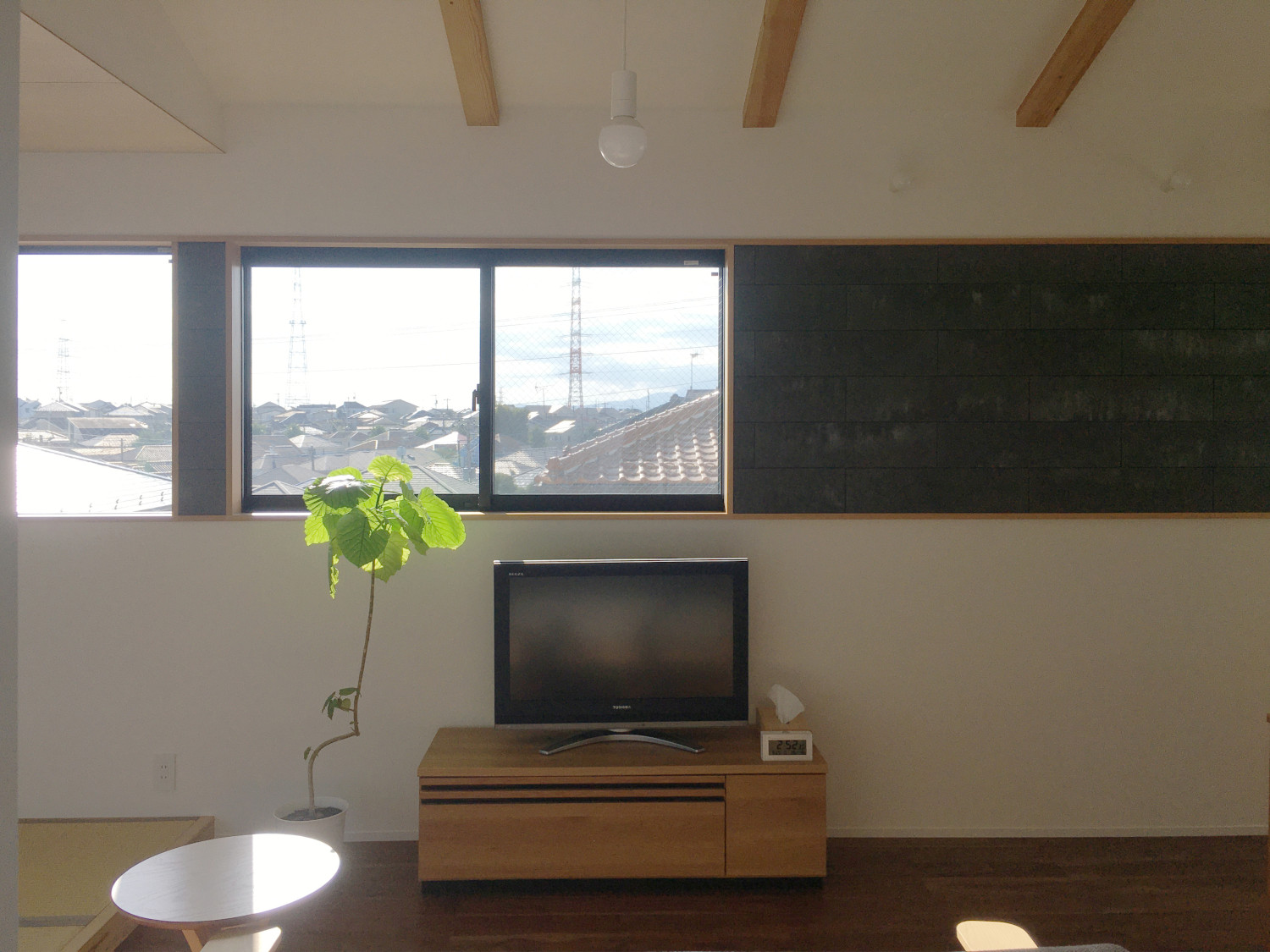 眺望とあわせてLDKはワンルームで梁をあらわしとした勾配天井とすることで、木の温かみとくつろぎを感じれられる空間に仕上げています。