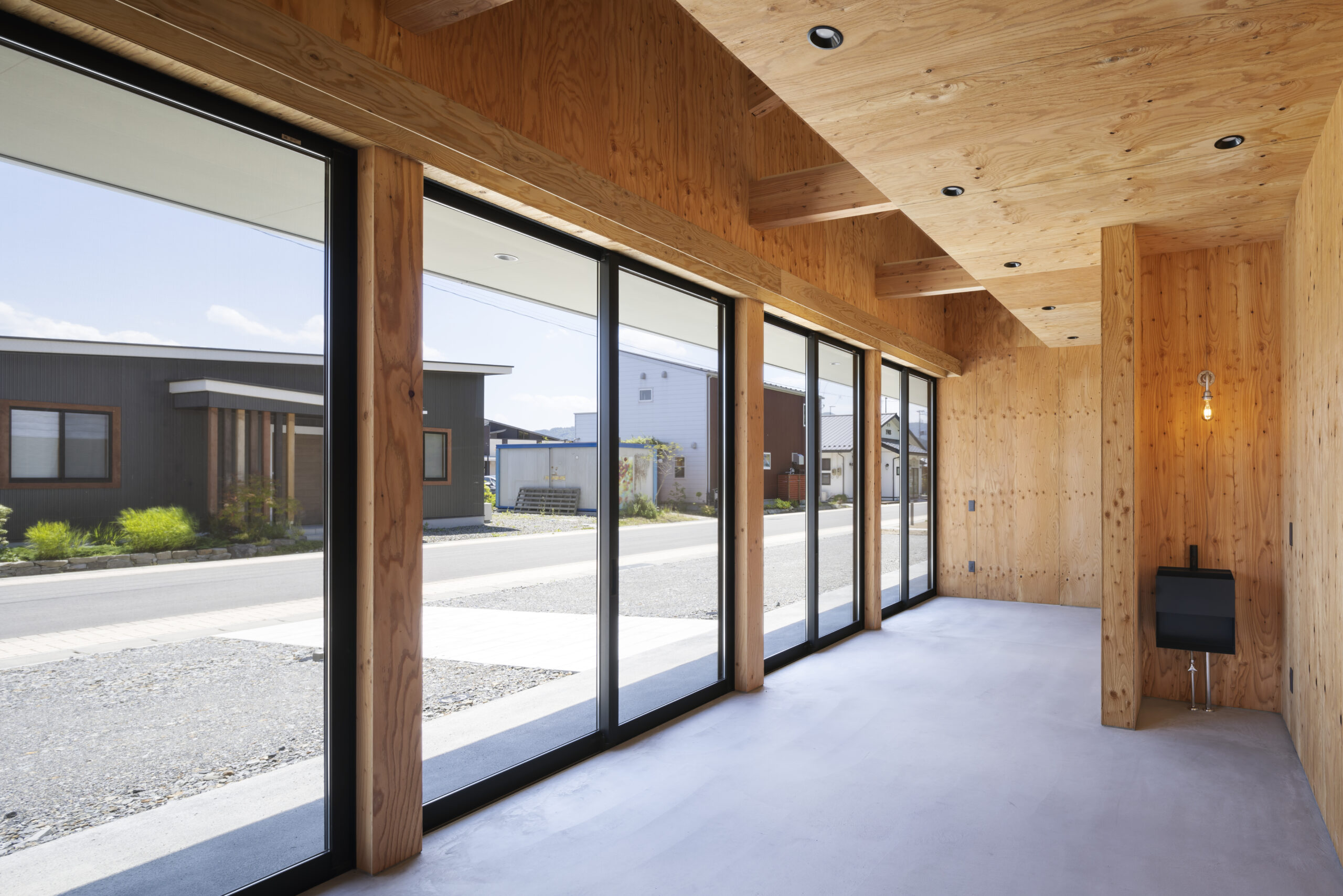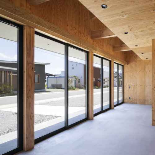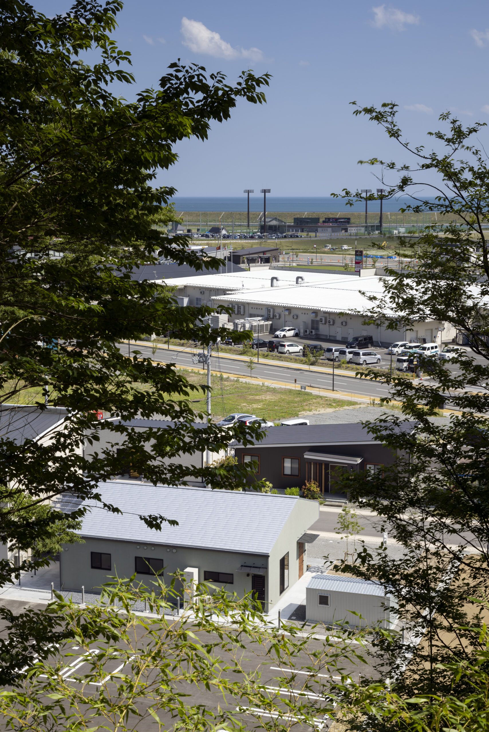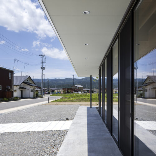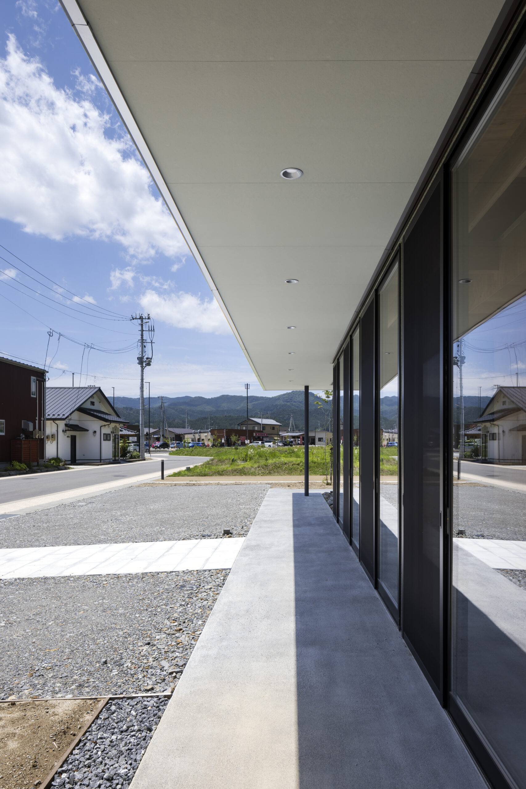 軒先の曲がった屋根はかつての商店の庇テントから着想を得ていて、少しでも元の景色と賑わいを取り戻すきっかけになることを願い計画しました。