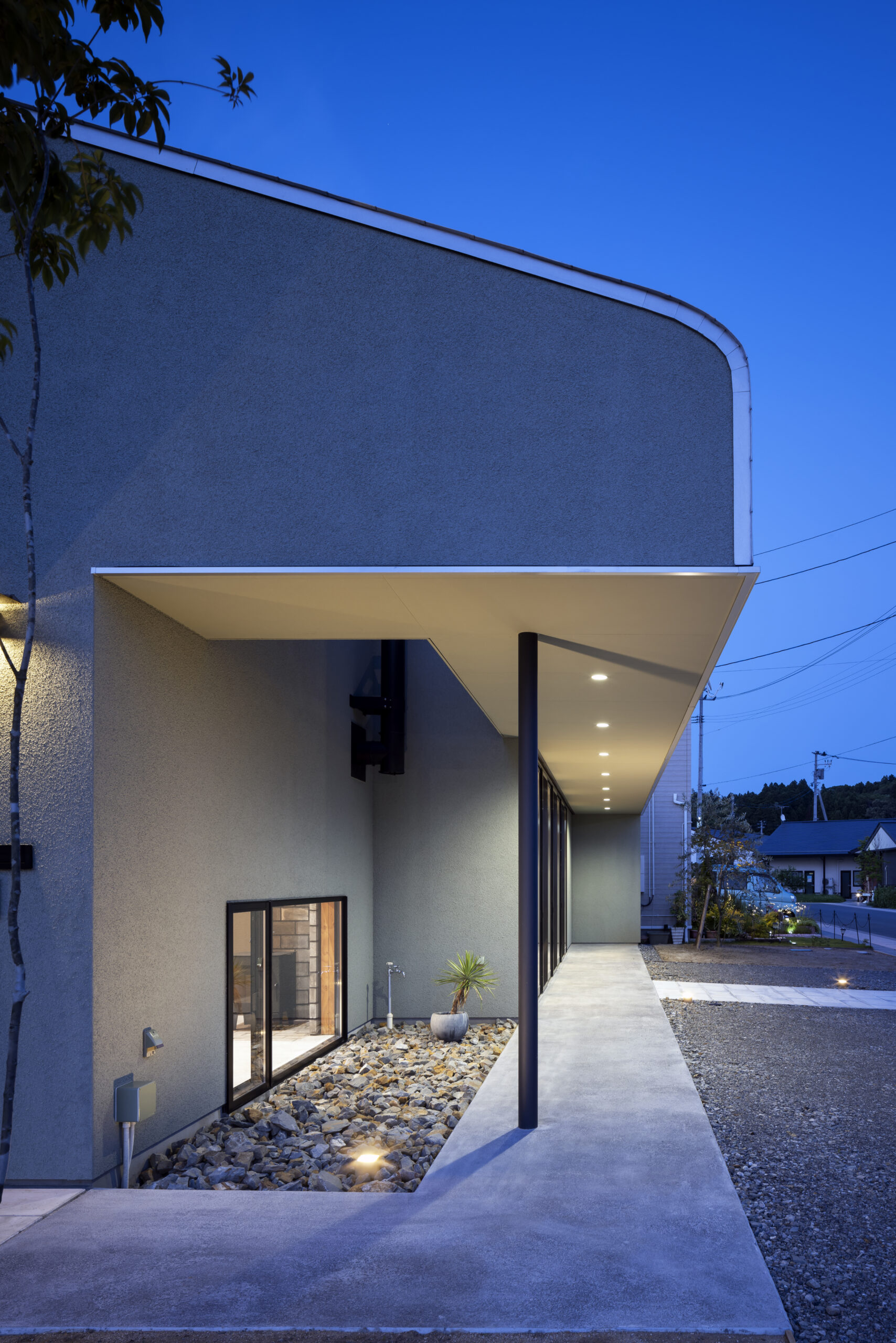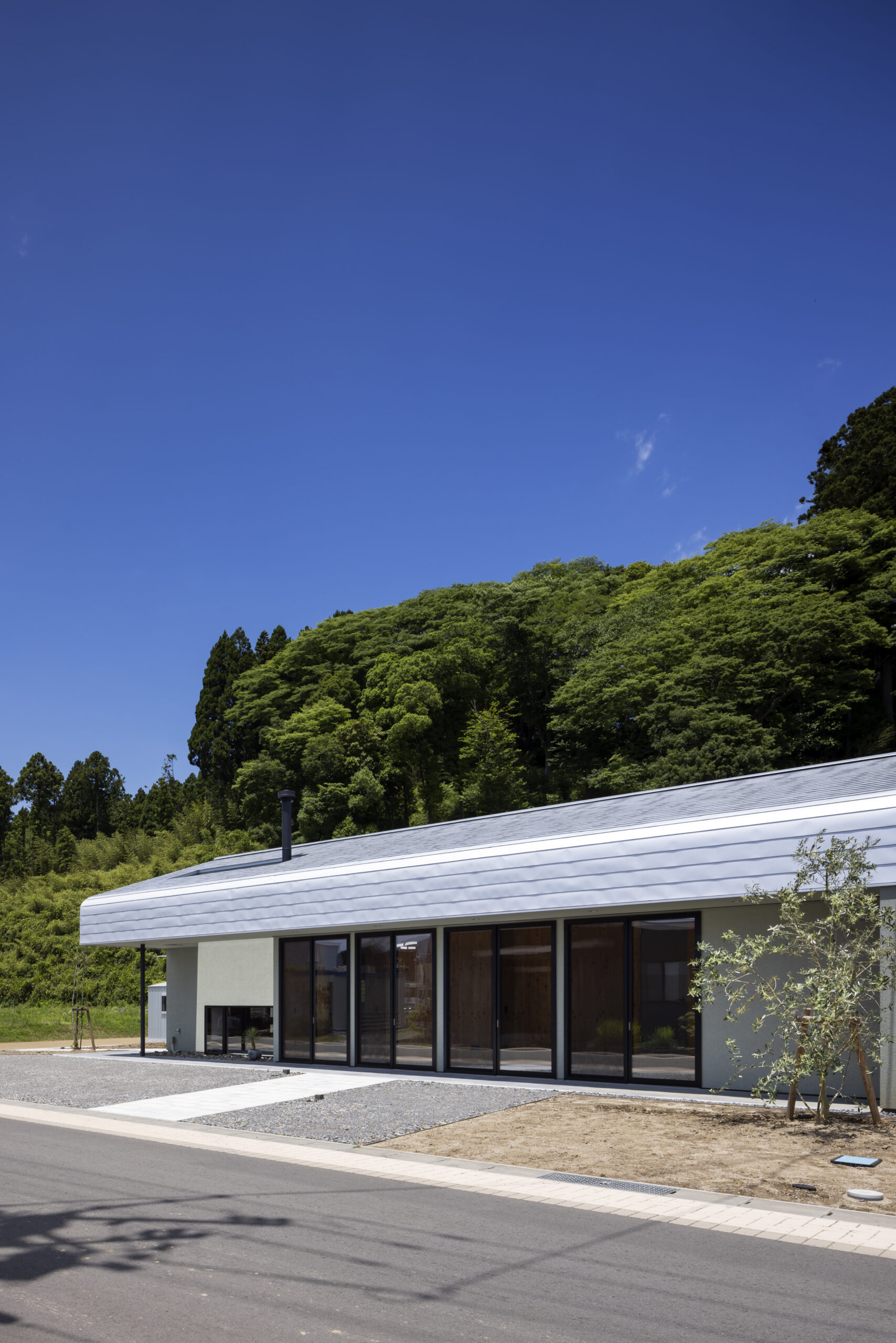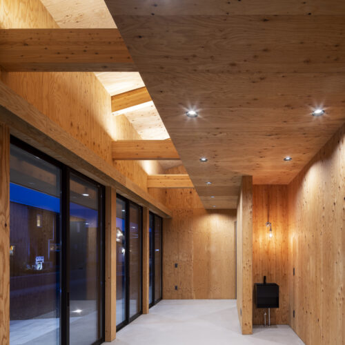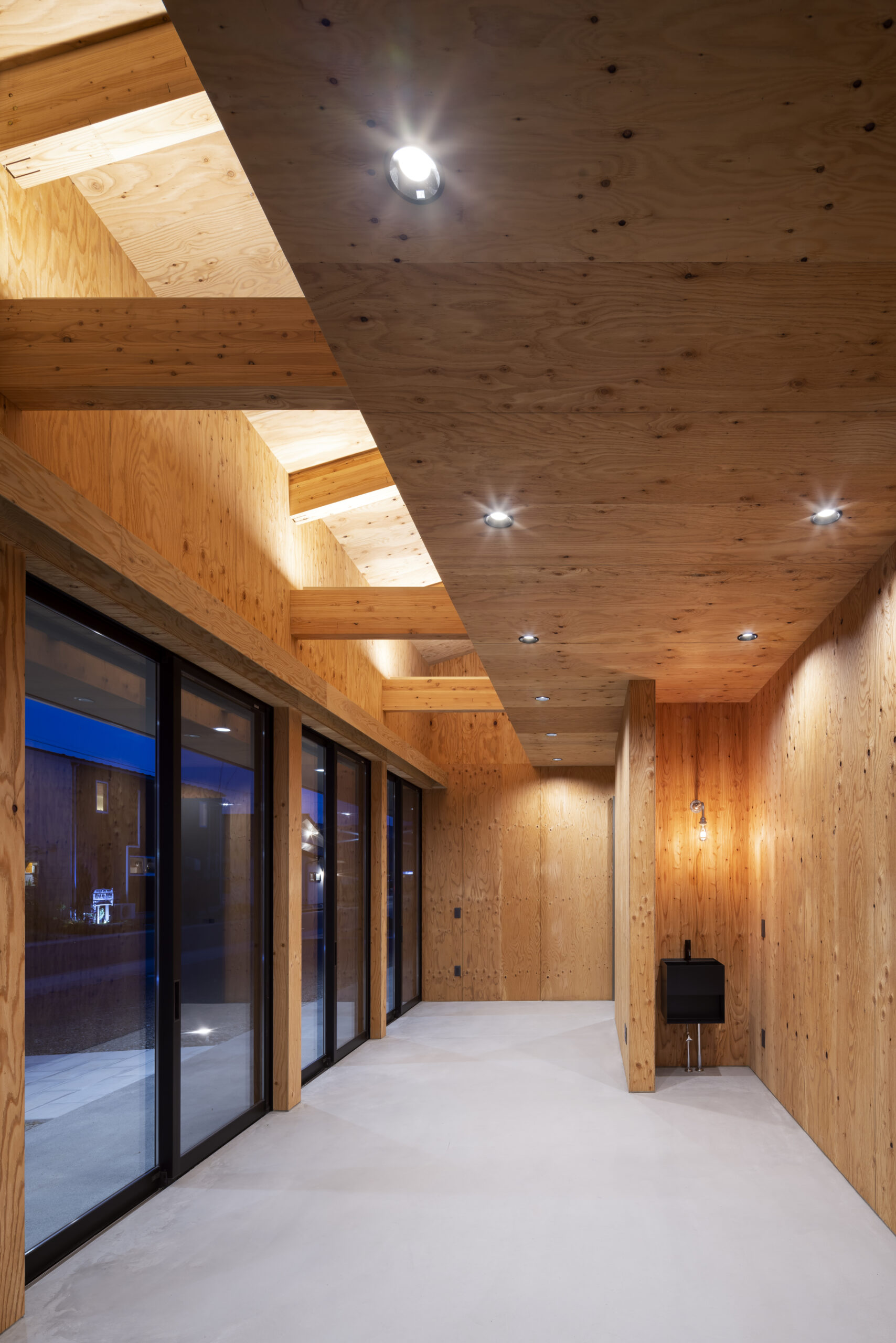 軒先の曲がった屋根はかつての商店の庇テントから着想を得ていて、少しでも元の景色と賑わいを取り戻すきっかけになることを願い計画しました。