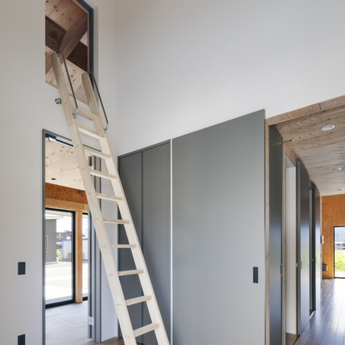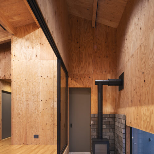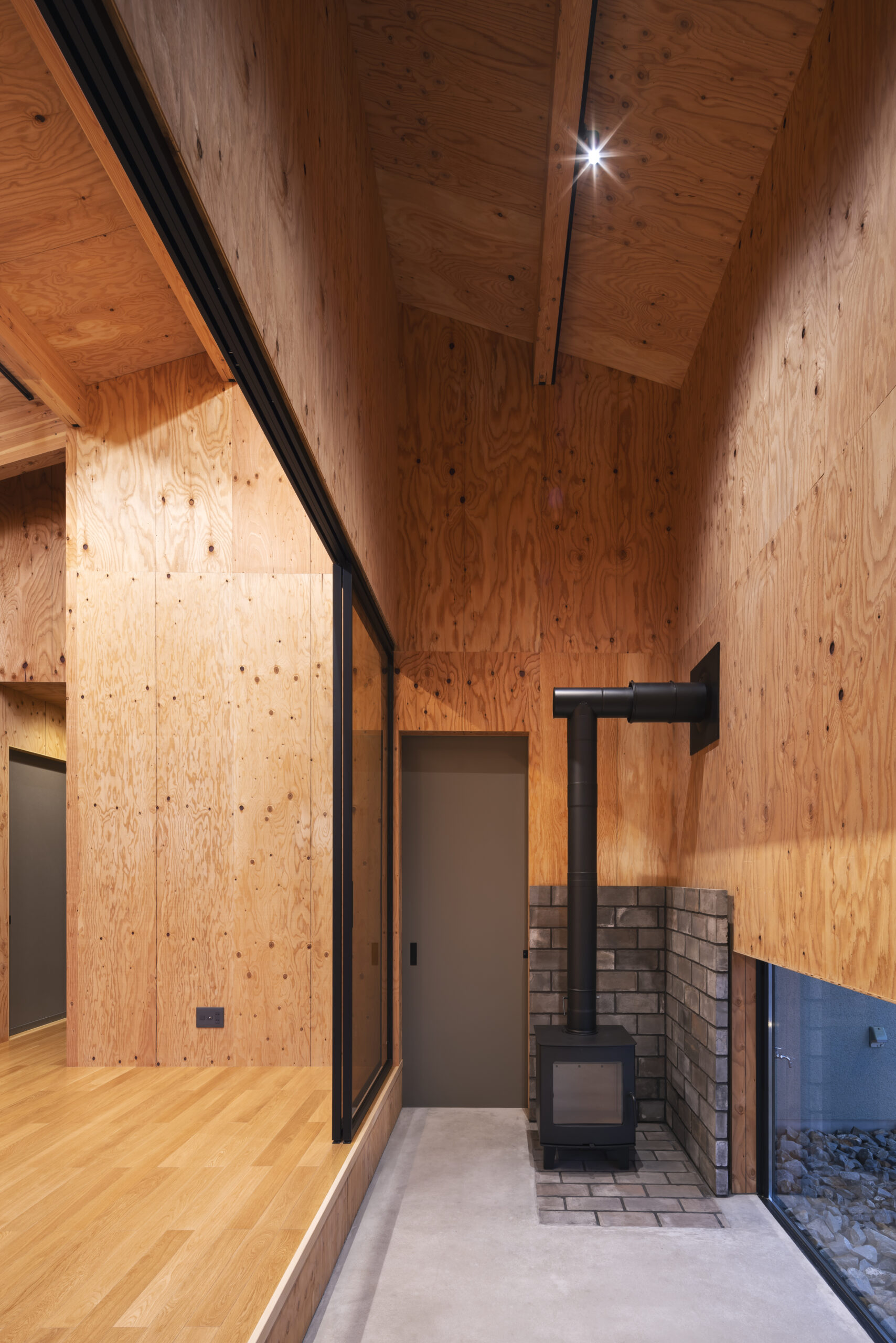 玄関には薪ストーブを設け、東北の寒い冬でも暖かく安心して過ごせるような工夫をしています。