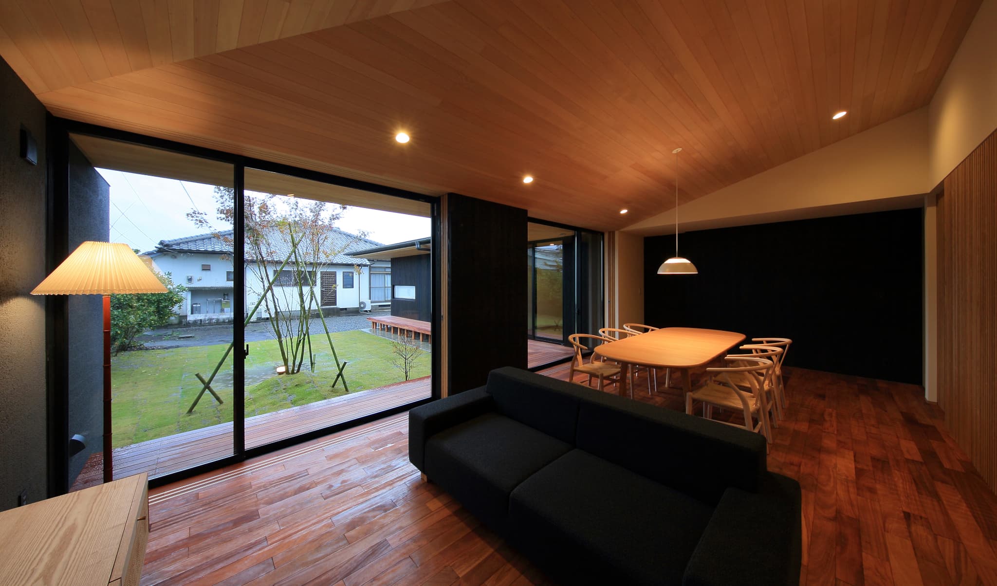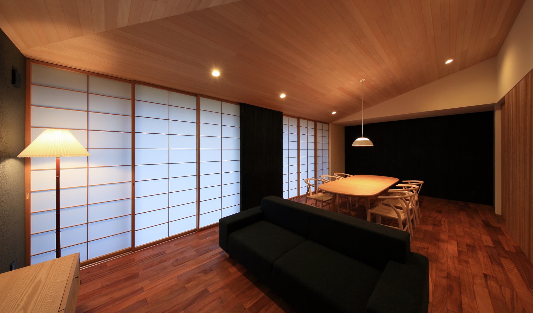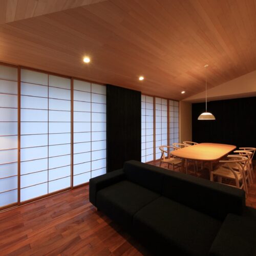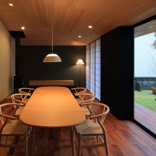 りながら、内側では開放的になるように計画。落ち着いた和の空間の中で北欧家具がしっ